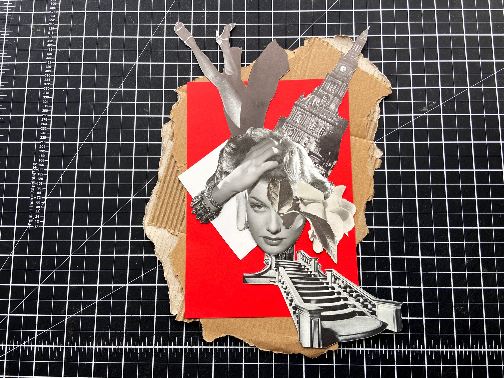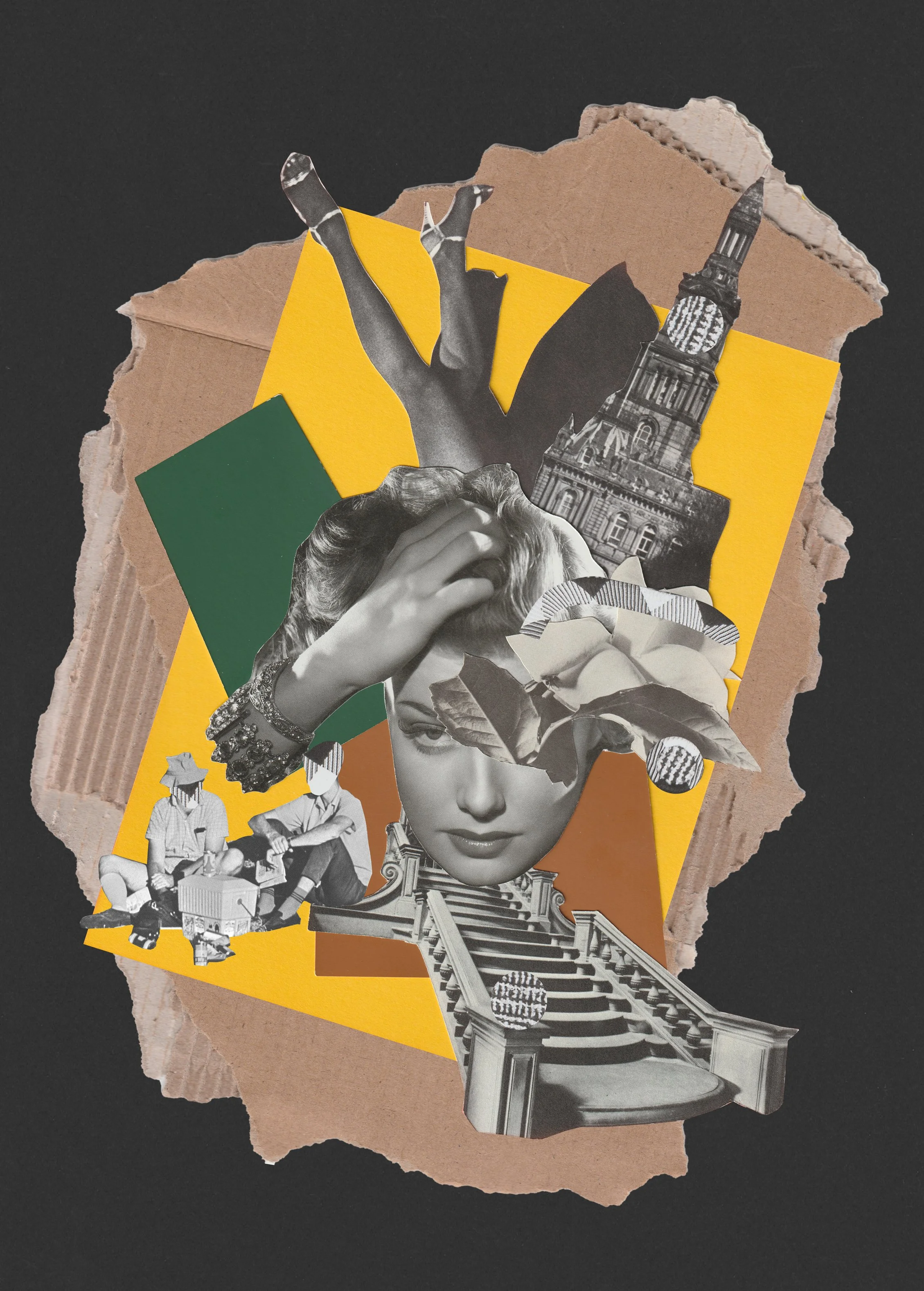 Collage was used as both a conceptual and material strategy — reflecting the way cultural change emerges through fragments, collisions, and reassembly. Rather than illustrating history literally, the works gather visual and emotional cues from the period and recombine them into compositions that feel lived-in, restless, and unresolved.
